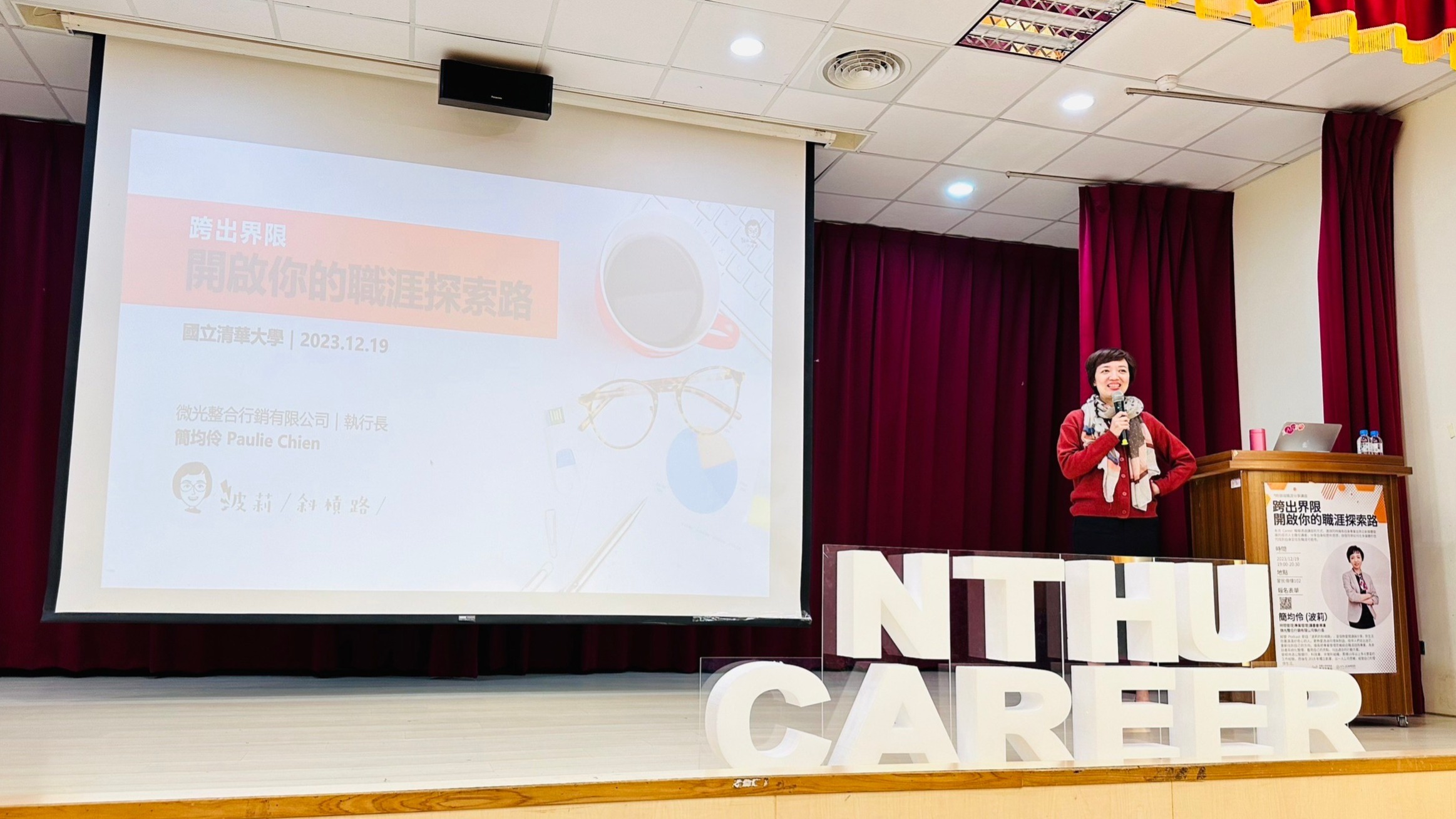 如果是不熟悉的場地,至少提前一小時到達會場,確認麥克風是哪種形式、試著操作投影筆、想想自己等下要站的位置、開場要說什麼…在腦中演練可能發生的狀況,提高自己的安全感。